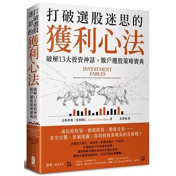 此書為美國紐約大學教授 Aswath Damoodaran 所著, 他同時也是華爾街投銀的估值專家. 書中詳細解說了 13 種常見選股方法的優劣點, 並以歷史經驗作為佐證 (故篇幅頗長), 目的是要向讀者呈現每一種投資策略的完整面貌, 以便能自行判斷哪些方法有效, 運用主動管理策略創造報酬. 作者想要強調的是, 身為投資人應該做哪些事才能提高勝率.